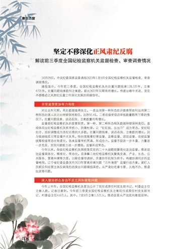 10月29日,中央纪委国家监委通报2023年1至9月全国纪检监察机关监督检查、审查调查情况。