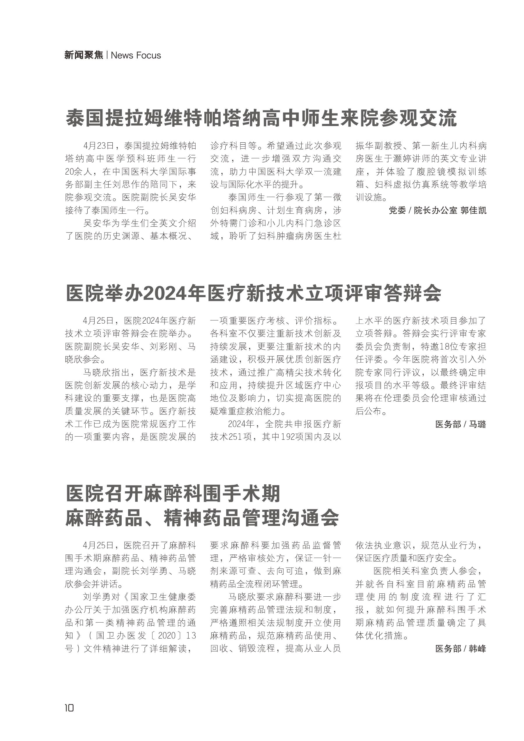 12 泰国提拉姆维特帕塔纳高中师生来院参观交流//医院举办2024年医疗新技术立项评审答辩会//医院召开麻醉科围手术期麻醉药品、精神药品管理沟通会