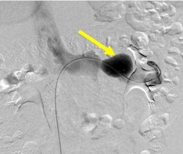 入院后,第一介入病房 外周血管介入病房副主任畅智慧为其进行了肾动脉和肾静脉血管造影检查,确认左肾静脉处存在一个约4cm的球状静脉瘤,并排除了胡桃夹综合征。