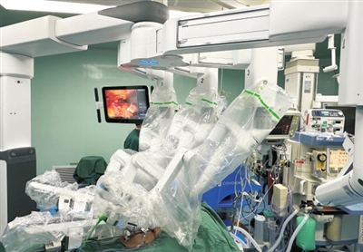手术当天,患者全身麻醉后连接达芬奇手术机器人床旁机械臂系统以及成像系统。赵俊刚在外科医生控制台通过控制三个机械臂,对患者进行了纵膈病损切除手术。手术历时1小时顺利完成。患者术后苏醒迅速,无不适症状,现已康复出院。