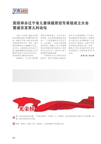 第10页:医院举办辽宁省儿童保健质控专家组成立大会暨盛京发育儿科论坛//光荣榜