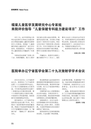 第08页:福棠儿童医学发展研究中心专家组来院评价指导“儿童保健专科能力建设项目”工作//医院举办辽宁省医学会第二十九次放射学学术会议